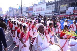 “झारखंड जतरा” झारखंड की समृद्ध सांस्कृतिक परंपरा, लोककला और जनएकता का जीवंत प्रतीक बनी। जतरा में राज्य की विभिन्न जनजातीय एवं स्थानीय समुदायों ने पारंपरिक वेशभूषा में नृत्य, गीत, वाद्य और झांकियों के माध्यम से अपनी संस्कृति की रंगारंग झलक पेश की। विभिन्न जिलों से आई झांकियों में झारखंड की लोककला, त्यौहार, नायक–नायिकाओं के योगदान और वीर सपूतों के संघर्ष को रचनात्मक रूप से दर्शाया गया। पूरे कार्यक्रम के दौरान हेलिकॉप्टर से पुष्पवर्षा की गई, जिससे वातावरण उल्लास, गर्व और भावना से सराबोर हो उठा।