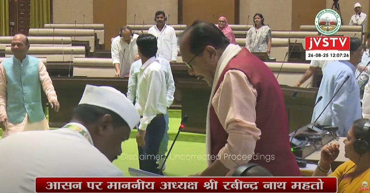 झारखंड विधानसभा के पूरक मानसून सत्र के तीसरे दिन मंगलवार को सदन में भारी हंगामा देखने को मिला। सत्ता पक्ष और विपक्ष के बीच तीखी नोकझोंक और नारेबाजी के कारण सदन की कार्यवाही दोपहर 12 बजे फिर 2 बजे तक के लिए स्थगित कर दी गई। सत्ता पक्ष के विधायकों ने ‘वोट चोर, गद्दी छोड़’ के नारे लगाए, जबकि विपक्ष ने भी जवाबी हंगामे के साथ अपनी मौजूदगी दर्ज की। सदन की कार्यवाही सुबह 11:10 बजे शुरू होते ही हंगामा शुरू हो गया। कांग्रेस विधायक दल के नेता प्रदीप यादव ने विशेष गहन संशोधन (SIR) का विरोध करते हुए अपनी बात रखी, जिसके बाद सत्ता पक्ष और विपक्ष के विधायक वेल में पहुंच गए। भाजपा विधायकों के हाथों से मार्शल ने पोस्टर छीन लिए, जिससे माहौल और गरमा गया। नारेबाजी और हंगामे के बीच विधानसभा अध्यक्ष रवींद्र नाथ महतो ने पहले कार्यवाही को 12 बजे तक और बाद में दोपहर 2 बजे तक स्थगित कर दिया।सूत्रों के मुताबिक, सत्ता पक्ष के विधायकों ने विशेष गहन संशोधन (SIR) के खिलाफ सीढ़ियों पर भी प्रदर्शन किया। इस दौरान ‘वोट चोर, गद्दी छोड़’ के नारे गूंजे, जो सत्र के दौरान सत्ता पक्ष की मुख्य मांग के रूप में उभरे। विपक्ष ने भी इस मुद्दे पर अपनी आपत्तियां दर्ज कीं, जिससे सदन में तनावपूर्ण माहौल बना रहा। सोशल मीडिया प्लेटफॉर्म X पर भी इस घटना को लेकर चर्चा गरम रही। एक यूजर ने लिखा, “विधानसभा में सत्ता पक्ष की एक मंत्री ‘वोट चोर, गद्दी छोड़’ के नारे लगा रही हैं। यह झारखंड की राजनीति का नया चेहरा है।”