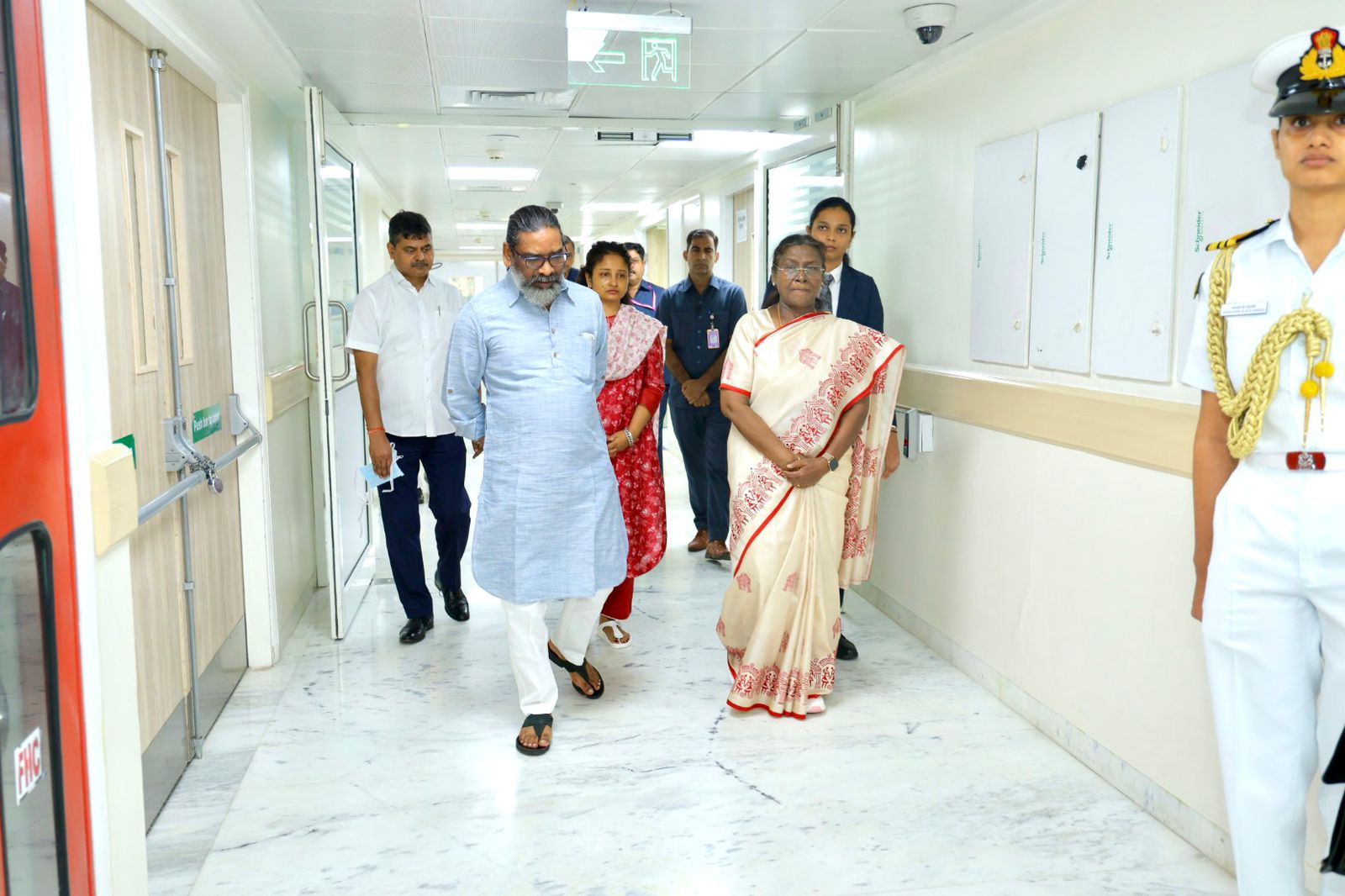 राष्ट्रपति श्रीमती द्रौपदी मुर्मु आज सर गंगा राम अस्पताल, नई दिल्ली पहुंचकर यहां इलाजरत राज्यसभा सांसद और झारखंड के पूर्व मुख्यमंत्री श्री शिबू सोरेन जी का कुशल क्षेम जाना। इस मौके पर उन्होंने श्री शिबू सोरेन जी के सुपुत्र और राज्य के मुख्यमंत्री श्री हेमन्त सोरेन और पुत्रवधू एवं विधायक श्रीमती कल्पना सोरेन से उनके स्वास्थ्य और चल रहे इलाज की पूरी जानकारी ली। माननीय राष्ट्रपति ने श्री शिबू सोरेन जी के शीघ्र एवं पूर्ण स्वस्थ होने की कामना की।