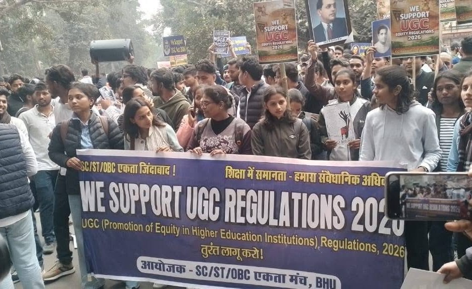 यूनिवर्सिटी ग्रांट्स कमीशन (UGC) के प्रमोशन ऑफ इक्विटी इन हायर एजुकेशन इंस्टीट्यूशंस रेगुलेशंस, 2026 के समर्थन में दिल्ली यूनिवर्सिटी (DU) और बनारस हिंदू यूनिवर्सिटी (BHU) सहित देशभर के कई कैंपस में छात्रों का जोरदार प्रदर्शन देखने को मिला है। SC, ST और OBC छात्र संगठन इन नियमों को उच्च शिक्षा में जातिगत भेदभाव रोकने और सामाजिक न्याय सुनिश्चित करने का महत्वपूर्ण कदम बता रहे हैं। प्रदर्शनकारियों ने मांग की है कि सुप्रीम कोर्ट द्वारा हाल ही में लगाई गई रोक हटाई जाए और नियम तुरंत लागू किए जाएं।