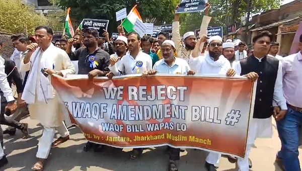 संसद में पास हुए वक्फ बिल को लेकर मुसलमानों का एक धड़ा इस संशोधन पर अपना विरोध जाता रहा है। जामताड़ा में आज जामताड़ा मुस्लिम मंच ने संसद में पास हुए वक्फ बिल के विरोध को लेकर हजारों की संख्या में मुस्लिमो ने पदयात्रा और प्रदर्शन कर इस बिल के खिलाफ नारे लगाए। हाथों में मोदी सरकार हाय हाय, बीजेपी हाय हाय, वक्फ बिल वापस लो की तख्तियां लेकर लोग सरकार से वक्फ संशोधन वापस लेने के नारे लगाते हुए पूरे जामताड़ा शहर का भ्रमण किया।
