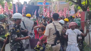 सुरक्षा कड़ी को तोड़कर आगे बढ़े प्रदर्शनकारी
