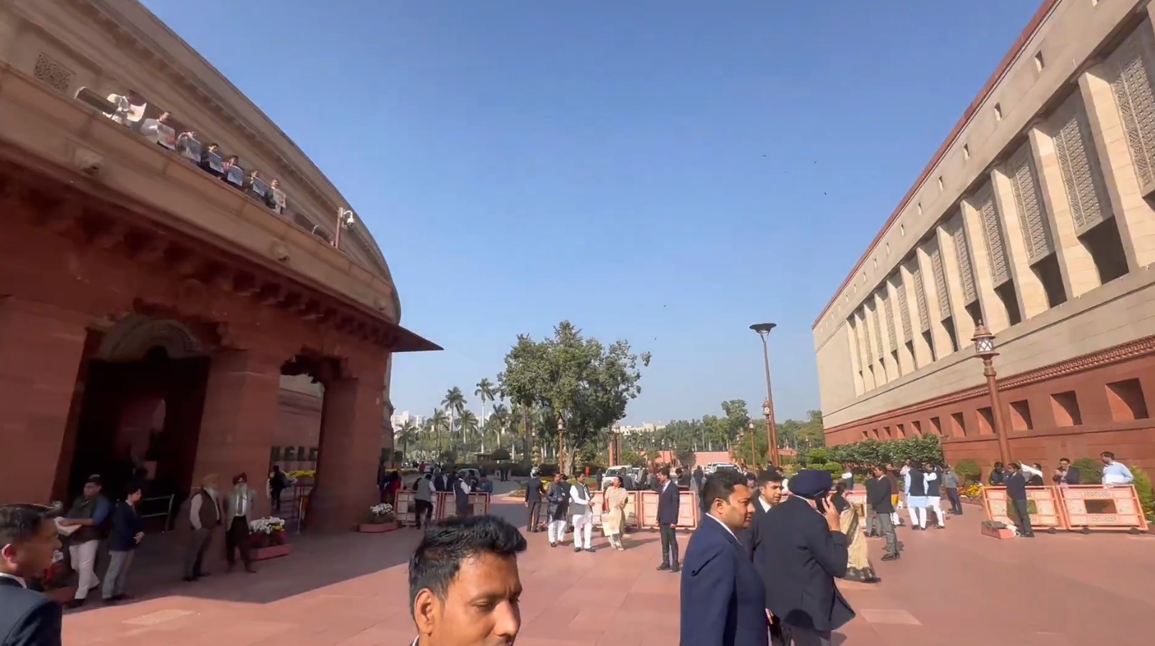 विपक्षी सांसदों ने सदन के वेल में उतरकर नारेबाजी की और तख्तियां उठाईं। प्रदर्शन संसद परिसर तक फैल गया, जहां प्रियंका गांधी, शशि थरूर, अखिलेश यादव, टीआर बालू सहित कई नेता महात्मा गांधी की प्रतिमा के पास इकट्ठा हुए और गांधीजी की तस्वीरें हाथ में लेकर विरोध किया। कांग्रेस नेता मल्लिकार्जुन खड़गे ने इसे “बीजेपी-आरएसएस की साजिश” करार दिया, जिसमें संघ की शताब्दी पर गांधी का नाम हटाने का आरोप लगाया।
